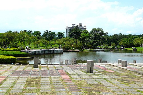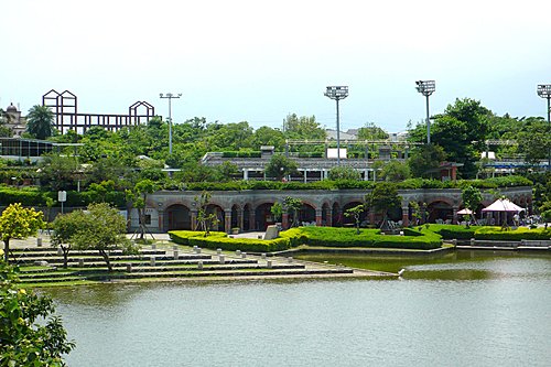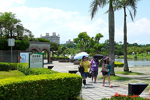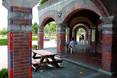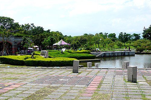 虹明湖:仿南方澳內埤海灣,岸旁有類似海浪的造景鋪設。