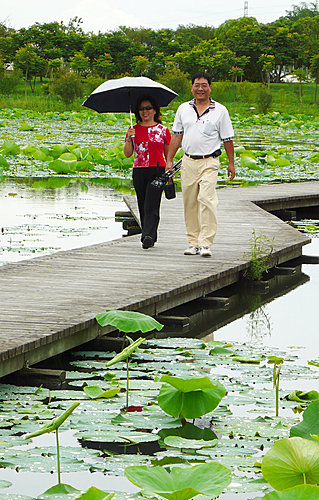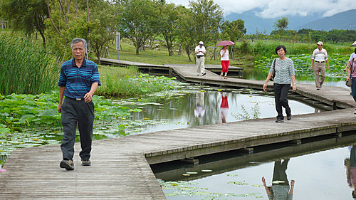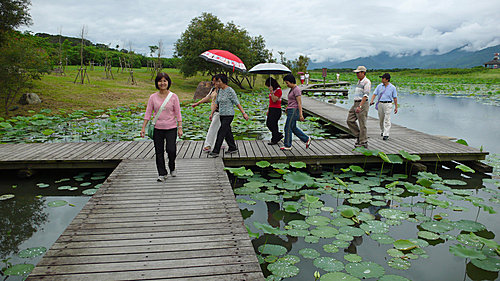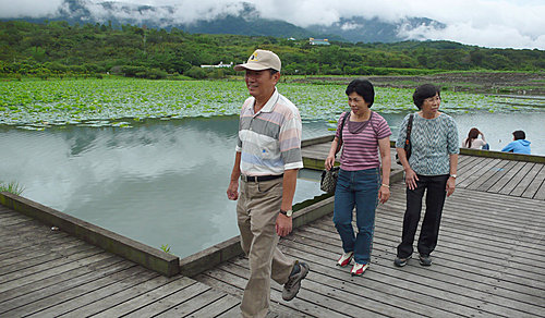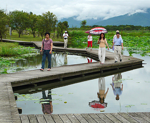 如今大坡池成了觀光景點,湖面闢有木棧步道。