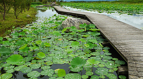 大波池是個大自然的珍寶,湖面蓮葉片片。