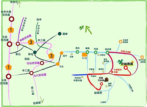 中二高(國道3號)>竹山/鹿谷交流道下>右轉台三線(往溪頭方向)>鹿谷(投151線8K)