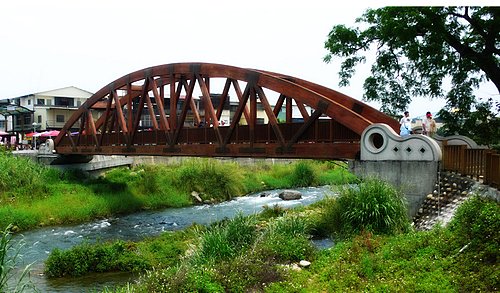 於石岡鄉農會展售中心旁之食水嵙溪上興建一座東南亞最大之原木木橋,長40米 、寬3.5米 。 (97/4/27)