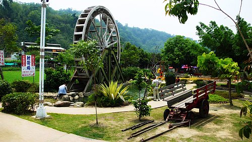 木橋週邊設有全國最大的水車(直徑9公尺)及河岸觀景台