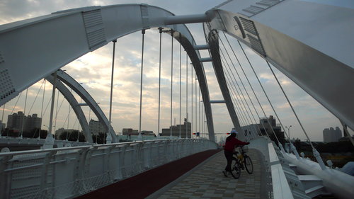 橋梁造型景觀具有代表愛河歷史人文及現代藝術之時代意義,橋型基本架構為下承式拱橋,除承受載重之主拱外,橋面兩側各配置一組斜拱,作為側向支撐穩定整體結構,橋體之律動變化,展現出結構力學及人文特色之美,披上白色外衣的橋體,夜間配合燈光之投射,河面倒影,婆娑搖曳,勾勒出輕盈時尚的現代感,呼應高雄年輕活力的特色。