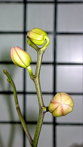蝴蝶蘭購回後切勿直接置放在空調設備旁或直接吹風處,可旁置水盆以提高空氣濕度。