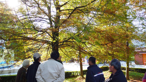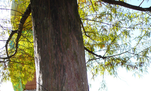 落羽松是少數會在秋冬季節會黃葉、落葉的針葉樹。