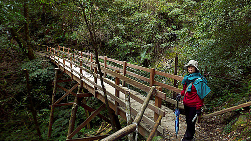 臨崖溪邊,木橋腰繞山徑,走在橋上,可聽見深谷傳回的咔咔聲。