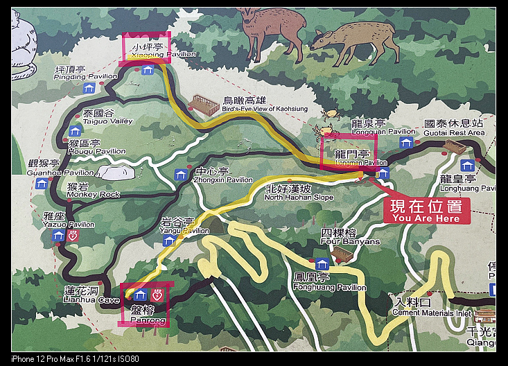 龍門亭~一個很多路線的交會點,如同北壽山之心臟一樣,經盤榕和雅座、小坪頂等重要的神經結點。