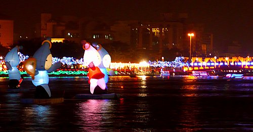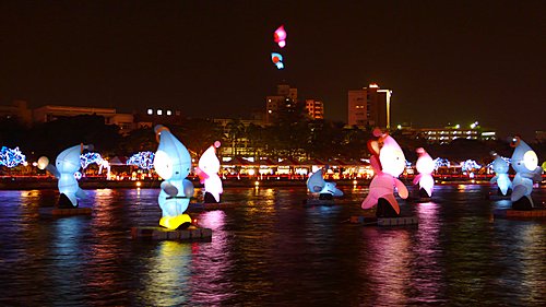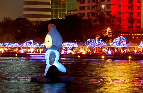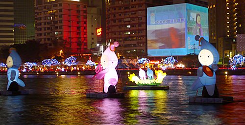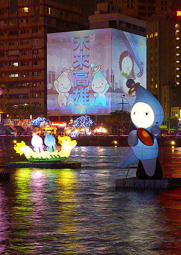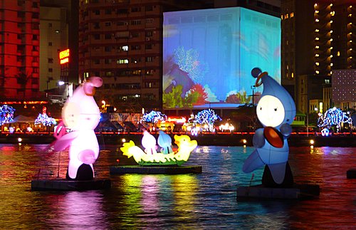 魔寶盒--引進國外最新科技,利用投影效果將原本的愛河大飯店大樓換上新裝,整棟大樓變換著不同的圖案與影像,時而為水族箱、文化及藝術圖樣,時而變成非洲大草原,又或呈現2009世運的運動內容,魔寶盒裡變化萬千,豐富的影像不斷上演,吸引人潮並帶給民眾無限的驚喜。