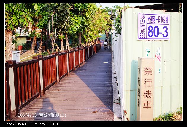 鳳山溪和曹公圳沿岸設14公里的自行車道,供民眾散步休閒。