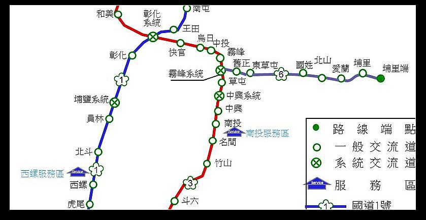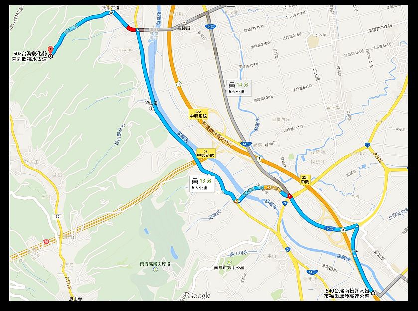 國道3號→南投交流道(224k)下→往芬園方向,沿碧興路(臺14乙)→左轉碧山路(縣148),續接員草路一段(縣148)直達路口。