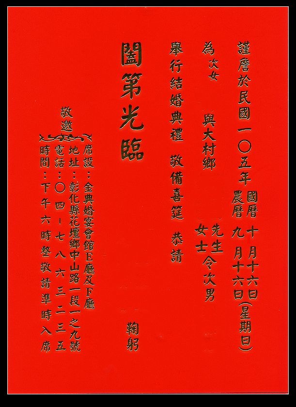 105/10/16 二姐夫次女定、結婚→ 二姐夫嫁女喜宴