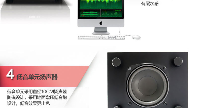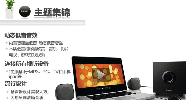 Philips/飛利浦 spa1315/93音響電腦檯式低音炮多媒體小音箱家用